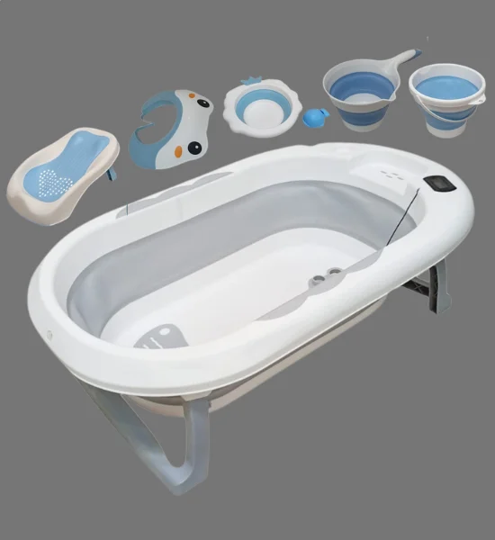 6 in 1 Foldable Baby Bath Tub Set with Accessories JYGW-Grey